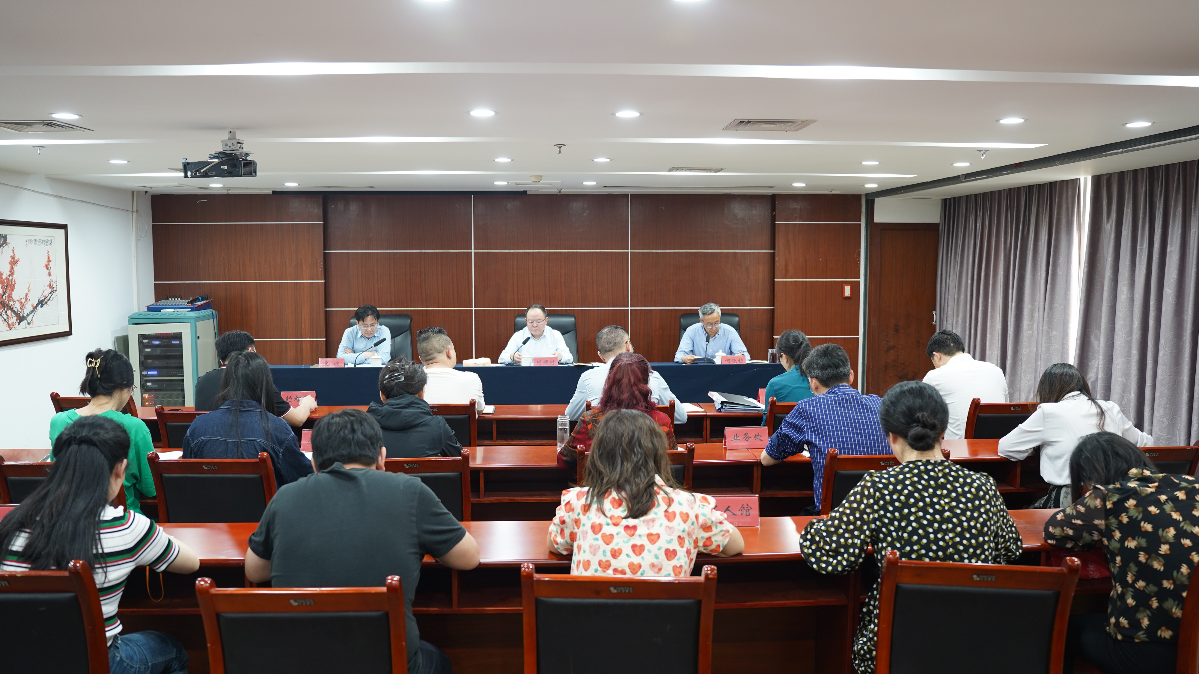 2024年4月28日,按照市委市政府部署安排,市政府文史館召開全體干部會議,傳達(dá)學(xué)習(xí)了習(xí)近平總書記在新時代推動西部大開發(fā)座談會上的重要講話精神、習(xí)近平總書記視察重慶重要講話重要指示精神和全市領(lǐng)導(dǎo)干部會議精神。會議由市委統(tǒng)戰(zhàn)部副部長、市政府文史館黨組書記賴順材主持,館機關(guān)、名人館全體干部參會。