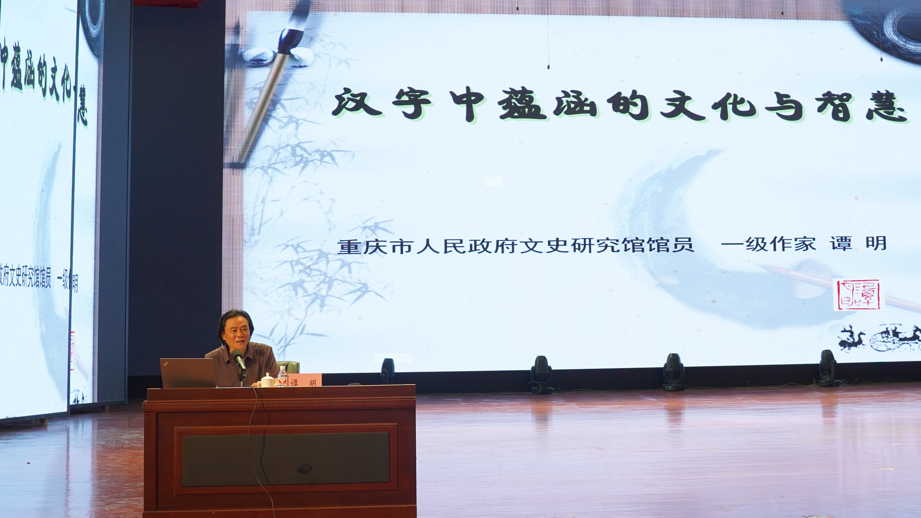 市政府文史館館員、一級文學(xué)創(chuàng)作、重慶十佳讀書人譚明,在《漢字中蘊(yùn)涵的文化與智慧》專題講座中,深入淺出地講解了漢字的歷史演變、結(jié)構(gòu)特點(diǎn),以及其中蘊(yùn)含的道德修養(yǎng)和人生智慧。通過生動(dòng)案例,引導(dǎo)全體師生認(rèn)識漢字、解讀經(jīng)典、聯(lián)系社會(huì)、感悟人生,從漢字中感受中華文明的博大精深,激發(fā)大家對漢字文化的濃厚興趣。大家紛紛表示將多讀經(jīng)典的書、永做有根的人。