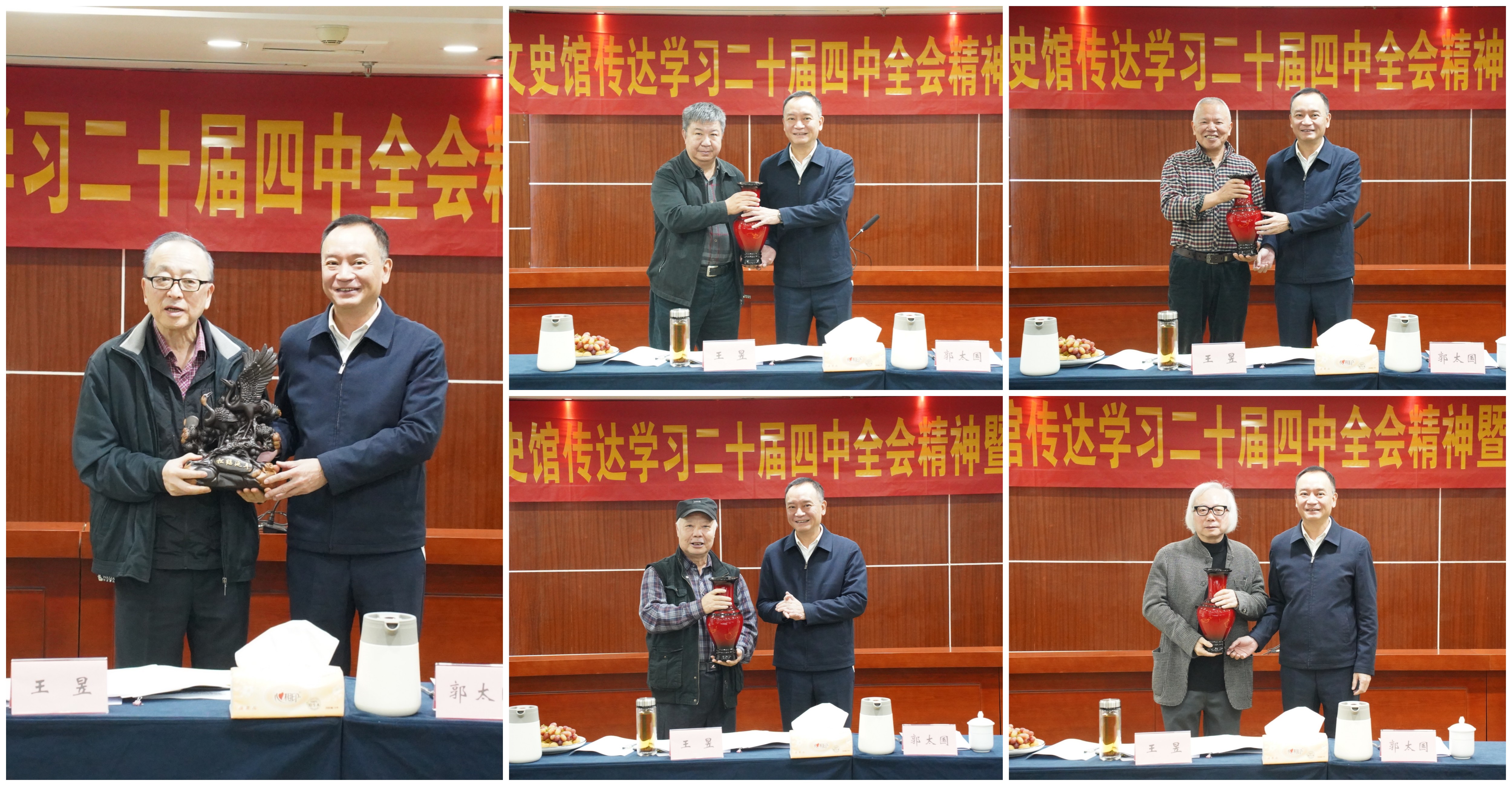 每逢重陽節(jié)為“晉十”壽星館員集體祝壽,是文史館的優(yōu)良傳統(tǒng),今年“晉十”的館員共有六位:年屆八旬的余德莊館員,年屆七旬的史若飛、李文崗、謝關(guān)鍵、傅文俊、劉明華館員。會(huì)上,王昱館長代表市政府文史館向壽星館員贈(zèng)送了生日紀(jì)念品并合影留念。余德莊館員代表壽星館員發(fā)表了滿懷深情的感言。與會(huì)館員圍繞學(xué)習(xí)貫徹黨的二十屆四中全會(huì)精神主題,結(jié)合自身研究領(lǐng)域和工作實(shí)際作了交流發(fā)言,會(huì)場(chǎng)氣氛溫暖而熱烈。
