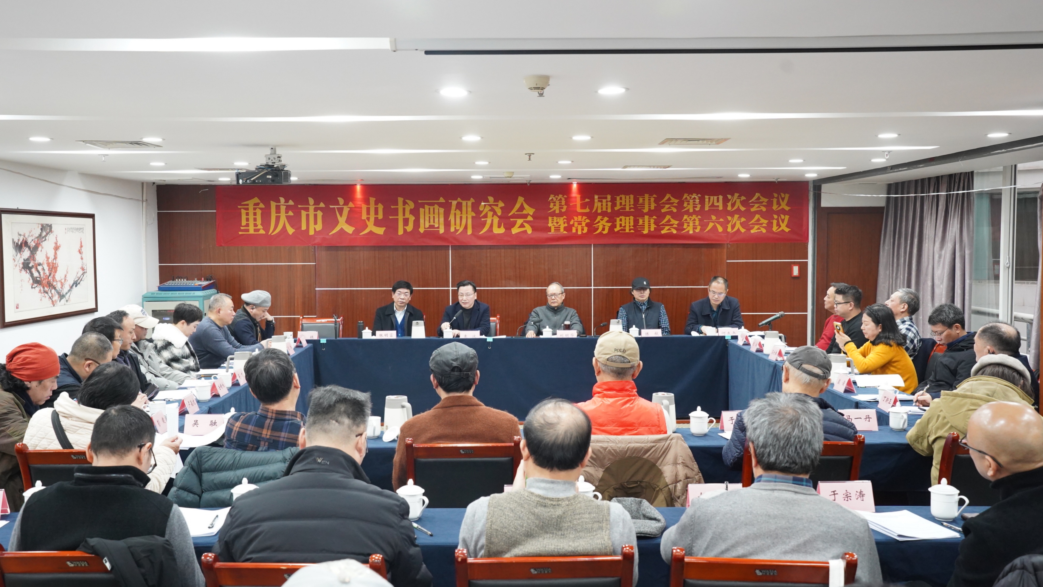 2025年12月30日上午,重慶市文史書畫研究會第七屆理事會第四次會議暨常務(wù)理事會第六次會議和特設(shè)支部黨員大會在市政府文史館大會議室召開。市政府文史館黨組成員、副館長袁波出席會議并講話,研究會會長劉明華主持會議,研究會副會長、秘書長、常務(wù)理事、理事共41人參加。